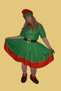 Kostým Elfí skřítek (pánský) – se skládá ze zeleného sáčka s dlouhými rukávy a z červených kalhot v pase na gumu, které jsou pod koleny také na gumu. Součástí je elfí čepka s rolničkou, pásek, pruhované punčocháče a botičky s rolničkami Velikost: 50. Cena za vypůjčení: 280.-Kč